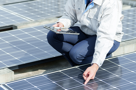 太陽光発電システムの設計を行います。これには、建物や敷地の特性に合わせたパネルの配置や取り付け方法の計画立案、出力最大化のための最適なインバーター(変換装置)の選定などが含まれます。